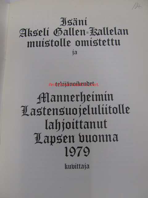 | Saatavilla | 1 kpl | | Julkaisuvuosi | 1979 | | Sivuja | 51 | | Painos | 1. | | Kunto | K3 | | Sidonta/painoasu | Nidottu (pehmeäk.) | | ISBN | 951-99217-2-9 | | Kielet | Suomi |