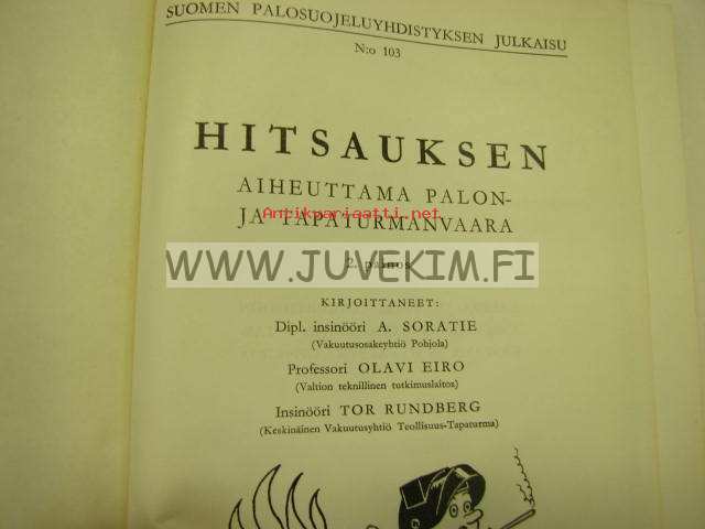 Soratie A., Eiro Olavi, Rundberg Tor, Suomen Palosuojeluyhdistys, 195313 x 18 cm kirja.