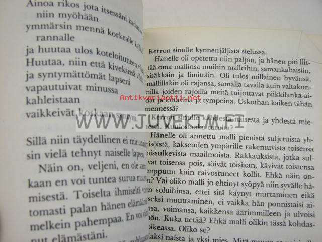 | Saatavilla | 1 kpl | | Julkaisuvuosi | 1979 | | Sivuja | 135 | | Painos | 1. | | Kunto | K3 | | Sidonta/painoasu | Sidottu (kansipaperit) | | ISBN | 951-0-09447-1 | | Kielet | Suomi |