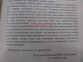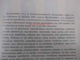 | Saatavilla | 1 kpl | | Julkaisuvuosi | 1951 | | Sivuja | 248 | | Painos | 1. | | Kunto | K3 | | Sidonta/painoasu | Sidottu (kovak.) | | Kielet | Suomi |