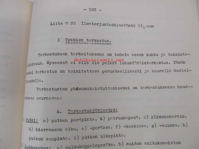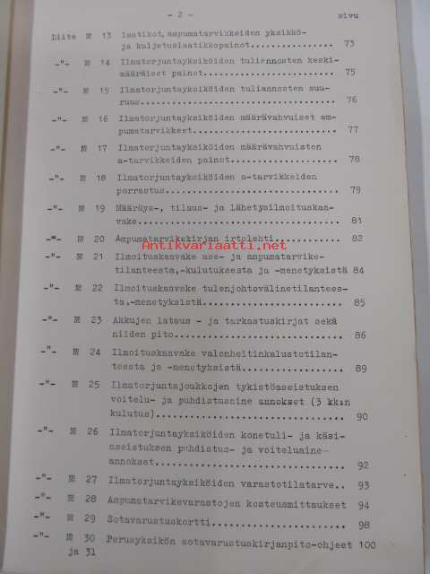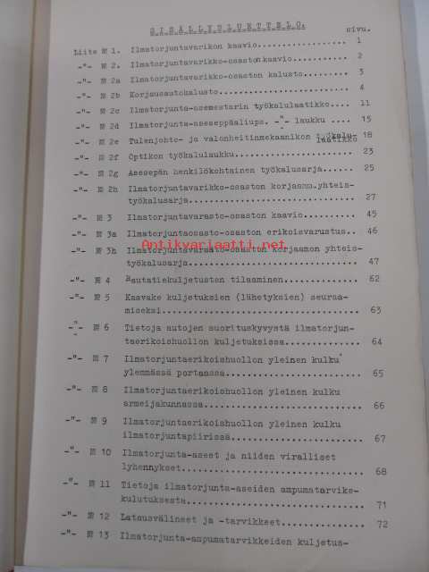 Ilmatorjuntaohjesääntö VI/2 Ilmatorjuntaerikoishuolto Yleisen osan liitteet