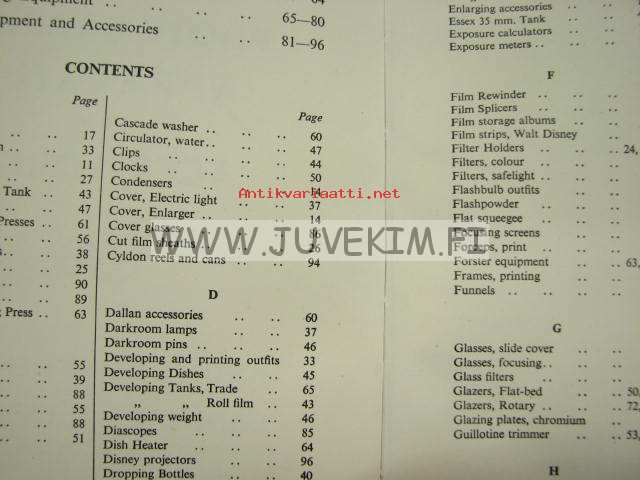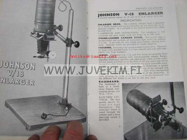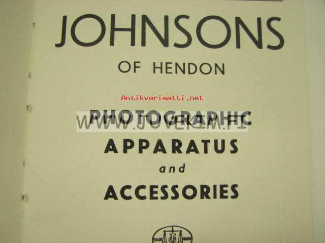 Johnsons of Hendon Photographic apparatus and accessories -valokuvaustarvikeluettelo