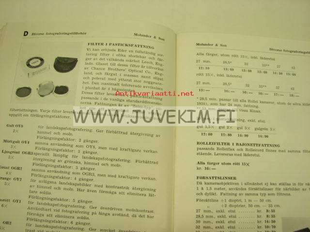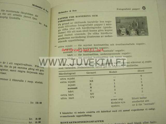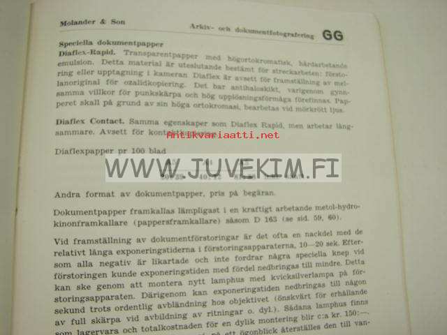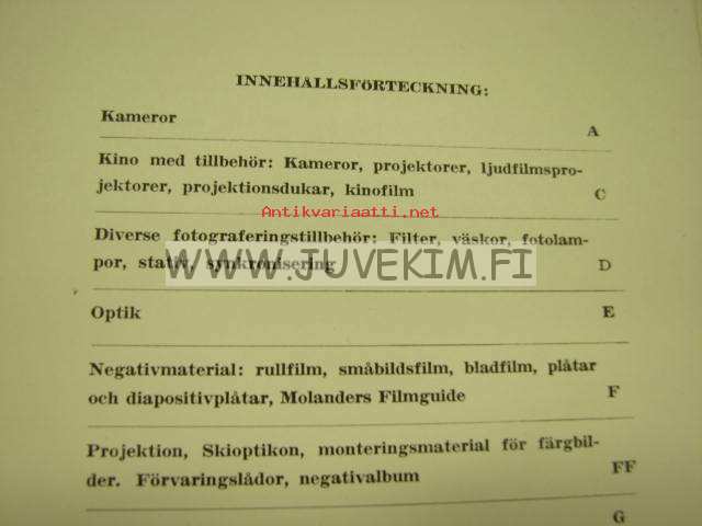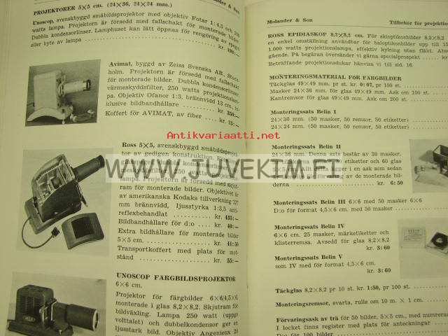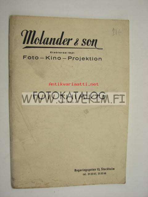 Molander & Son Foto-Kino-Projektion Fotokatalog nr 109 juli 1949 -valokuvaustarvikeluettelo