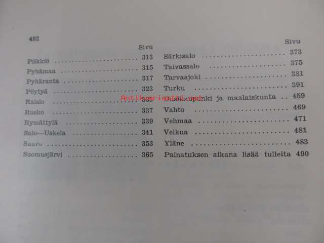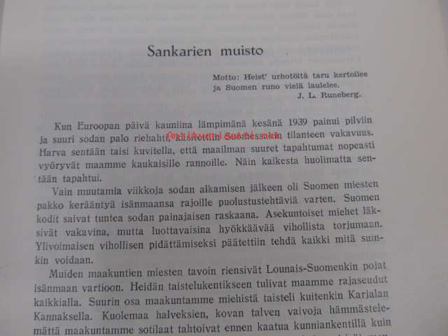 | Saatavilla | 1 kpl | | Julkaisuvuosi | 1940 | | Sivuja | 492 | | Painos | 1 | | Kunto | K3 | | Sidonta/painoasu | Nidottu (pehmeäk.) | | Kielet | Suomi |