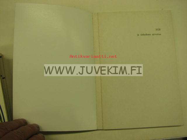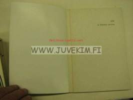 | Saatavilla | 1 kpl | | Julkaisuvuosi | 1973 | | Sivuja | 88 | | Painos | 1. | | Kunto | K2 | | Liimasidos aukeilee, "irtolehtipainos" | | Sidonta/painoasu | Nidottu (pehmeäk.) | | ISBN | 951-30-2223-4 | | Kielet | Suomi |