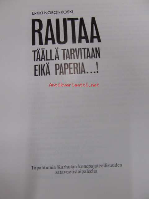 Rautaa täällä tarvitaan eikä paperia...! Tapahtumia Karhulan konepajateollisuuden satavuotistaipaleelta