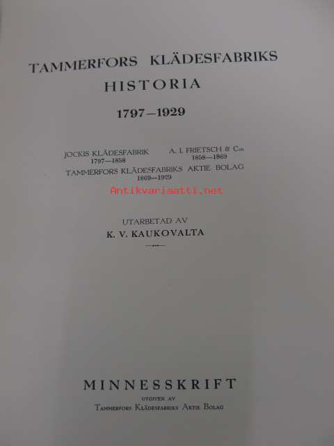 Kaukovalta K.V., Tammerfors Klädesfabrik AB, 1930
