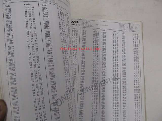 Volvo key codes, nyckelkoder -avainkoodikirja 1972?
