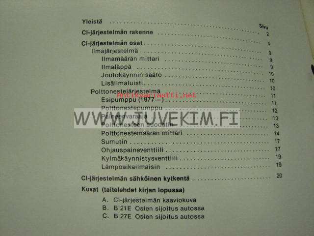 Volvo Huoltokäsikirja osa 2 (24) Rakenne ja toiminta Polttonestejärjestelmä, suihkutusmoottorit B 21E, B 27E -korjaamokirjasarjan osa