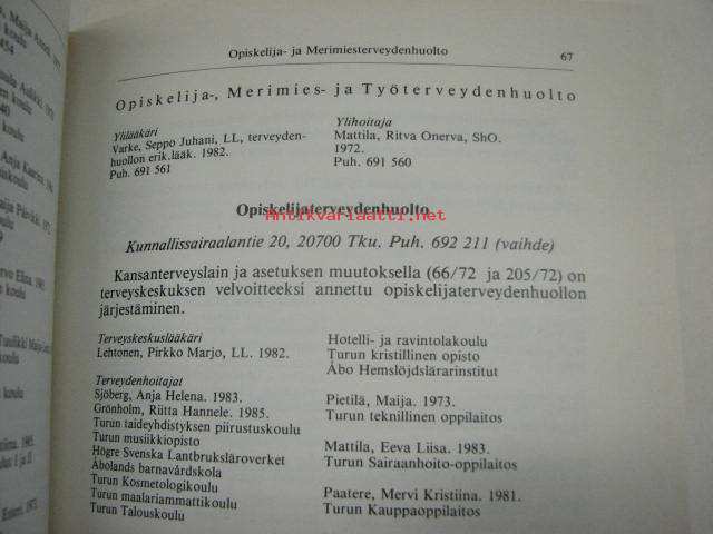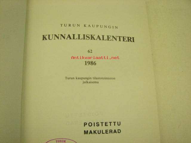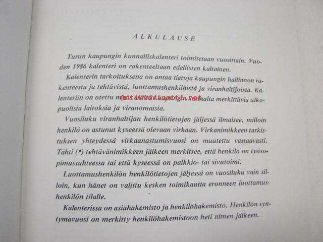 Turun kaupungin kunnalliskalenteri 1986