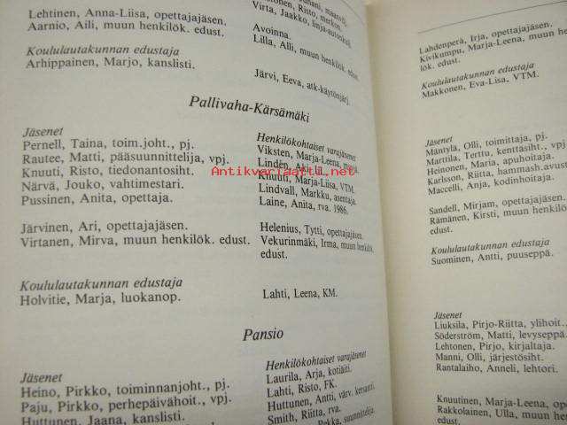 | Saatavilla | 1 kpl | | Julkaisuvuosi | 1986 | | Sivuja | 318 | | Painos | 1. | | Kunto | K3 | | Poistoleimat | | Sidonta/painoasu | Nidottu (pehmeäk.) | | ISBN | 0357-0878 | | Kielet | Suomi |