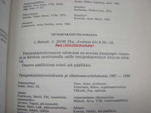 Turun kaupungin tilastotoimisto, 198615 x 21 cm kirja.
