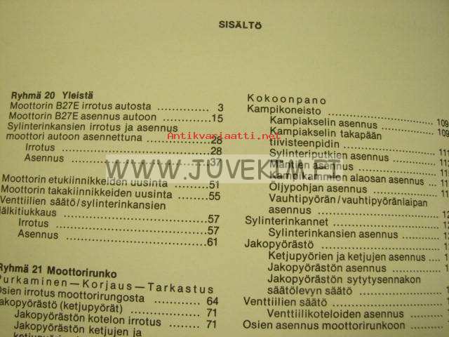 Volvo Huoltokäsikirja osa 2 (paitsi ryhmät 23, 24, 27) Korjaus ja huolto Moottori B 27 -korjaamokirjasarjan osa