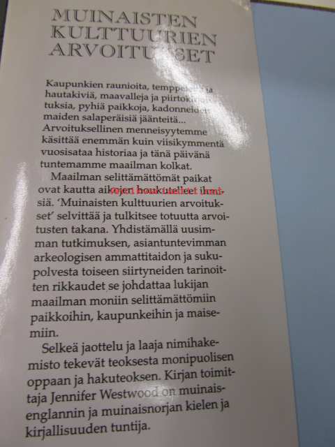 | Saatavilla | 1 kpl | | Julkaisuvuosi | 1988 | | Sivuja | 239 | | Painos | 4. | | Kunto | K4 | | Sidonta/painoasu | Sidottu (kansipaperit) | | ISBN | 951-1-09924-8 | | Kielet | Suomi |