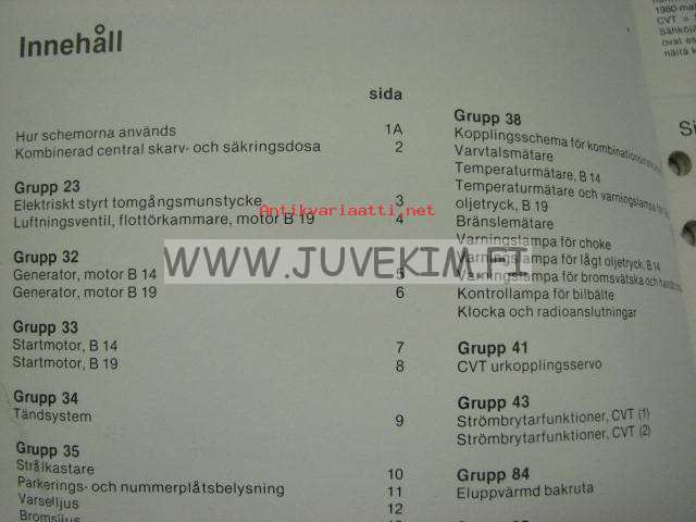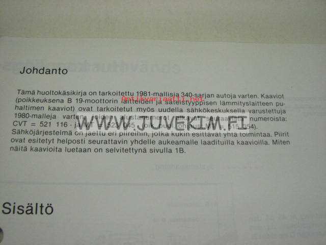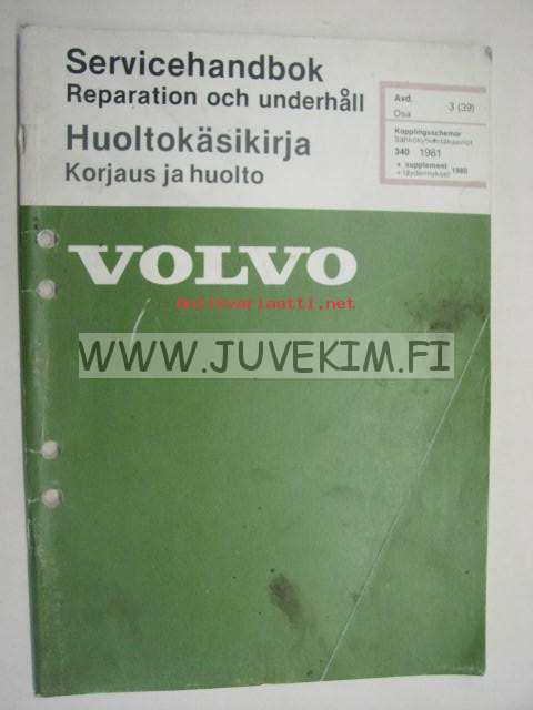 Volvo Huoltokäsikirja Vianetsintä Osa 3 (39) Sähkökytkentäkaaviot 340 1981 + täydennykset 1980 -korjaamokirjasarjan osa