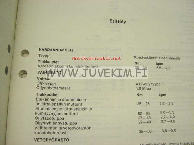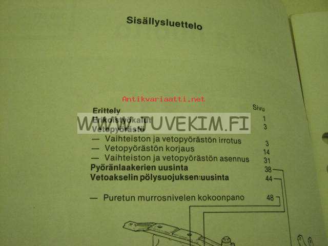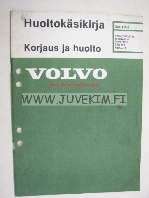 Volvo Huoltokäsikirja Korjaus ja huolto Osa 4 Vetopyörästö ja takapyörien laakerointi 340 MT 1979-19.. -korjaamokirjasarjan osa
