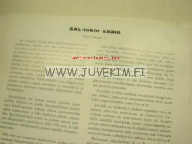 | Saatavilla | 2 kpl | | Julkaisuvuosi | 19?? | | Sivuja | 18 + kuvasivut | | Kunto | K2 | | Sidonta/painoasu | Nidottu (pehmeäk.) | | Kielet | Suomi |