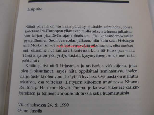 | Saatavilla | 1 kpl | | Julkaisuvuosi | 1990 | | Sivuja | 277 | | Painos | 1. | | Kunto | K3 | | Sidonta/painoasu | Sidottu (kansipaperit) | | ISBN | 951-0-16739-8 | | Kielet | Suomi |