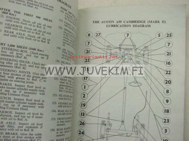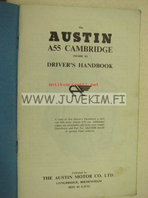 Austin A55 Cambridge Mark II Driver´s handbook -käyttöohjekirja
