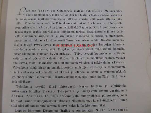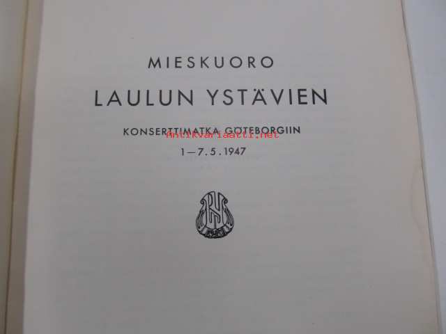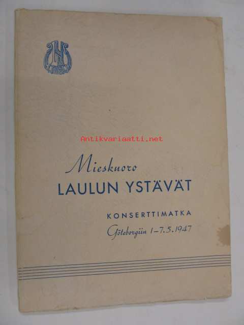 Mieskuoro Laulun Ystävät - Konserttimatka Göteborgiin 1.-7.5. 1947