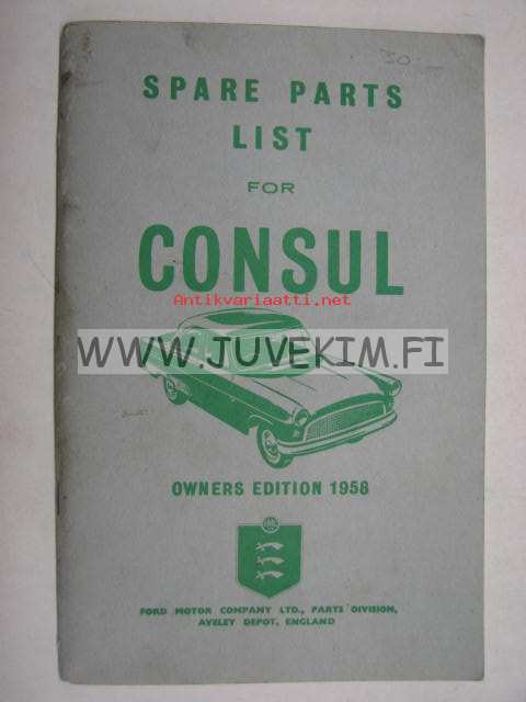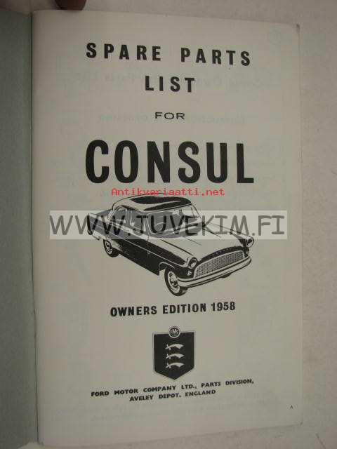 Ford Consul spare parts list owner´s edition 1958 -varaosaluettelo (omistajan versio)