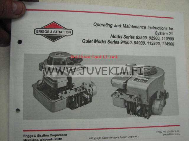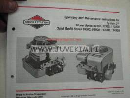 Briggs & Stratton Instructions for System 2 Model series 92500, 110900, Quiet Model Series 94500, 94900, 113900, 114900 -käyttöohjeet