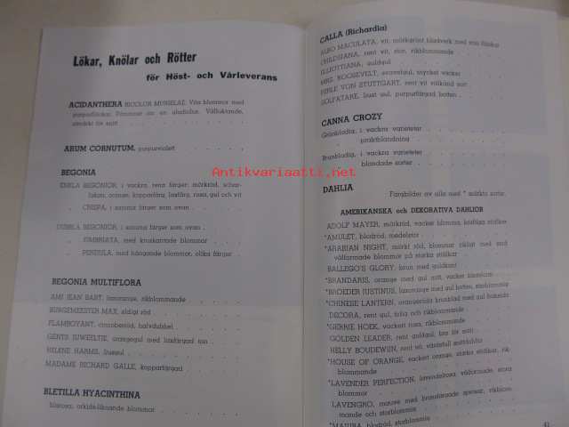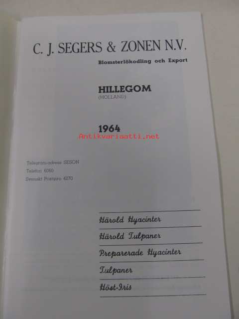 Priskurant. C.J. Segers & Zonen N.V. - Blomsterkodling och Export - Hillegom (Holland)