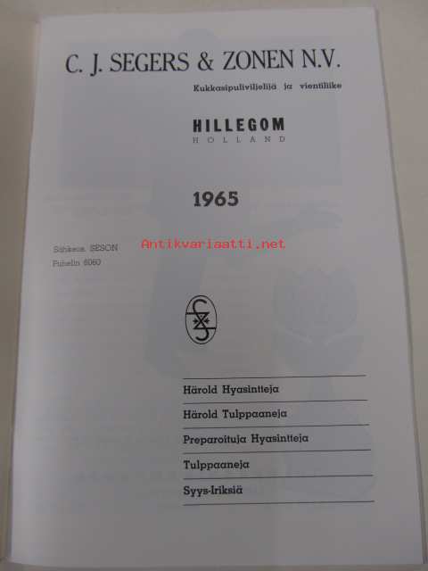Hinnasto / Priskurant. C.J. Segers & Zonen N.V. -Kukkasipuliviljelijä ja vientiliike - Hillegom (Holland)