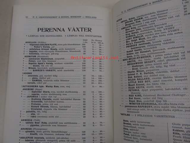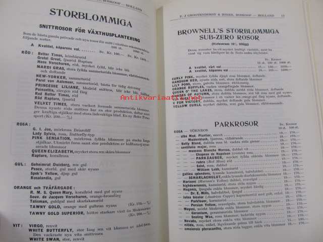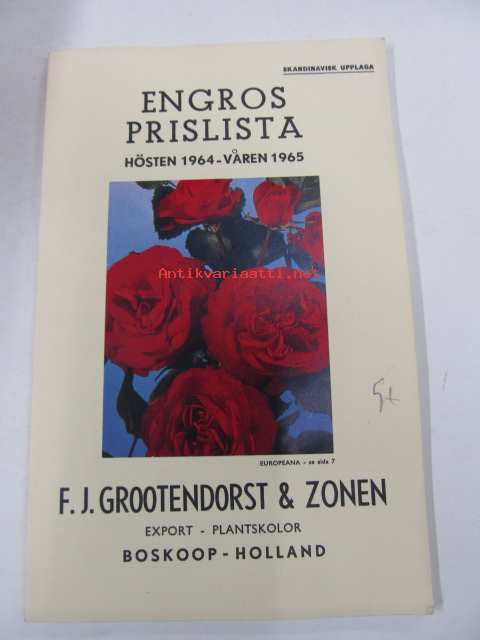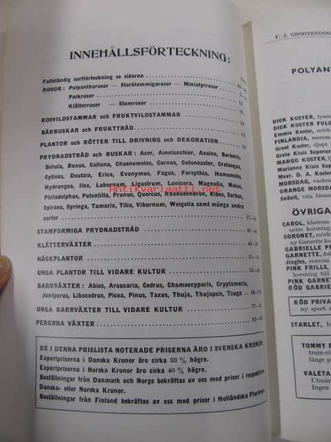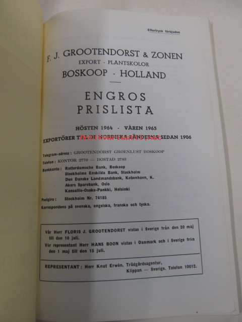 Engros prislista - F.J. Grootendorst & Zonen Export - Plantskolor (Boskoop - Holland)