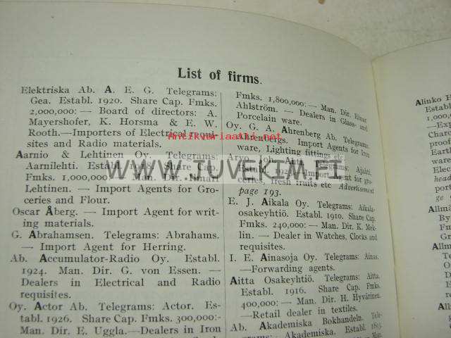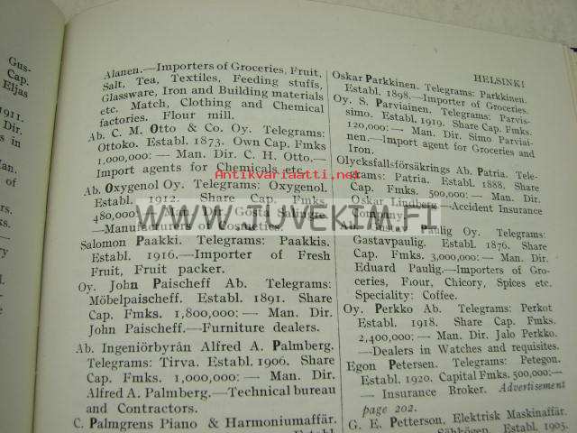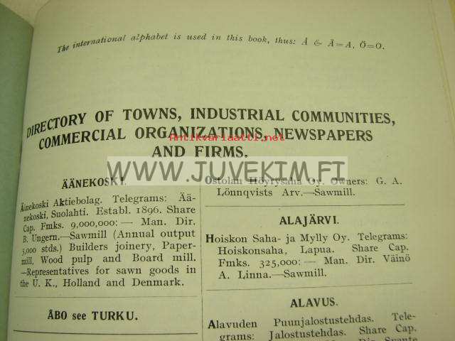 Directory of Finnish Manufacturers, Merchants and Shippers 1927-1928