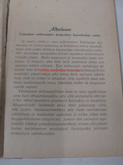Valistuksen Mittausoppi kaupunkien kansakouluille 1923 4.painos