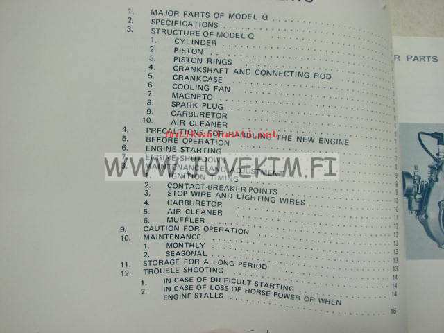 TAS motor model Q-22 owner´s manual -käyttöohjekirja englanniksi