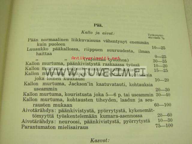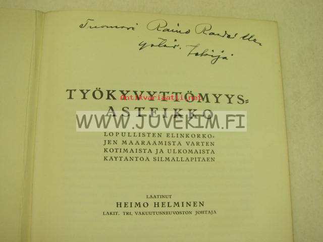 Työkyvyttömyysasteikko lopullisten elinkorkojen märäämistä varten kotimaista ja ulkomaista käytäntöä silmälläpitäen (tekijän Heimo Helmisen omiste Rai