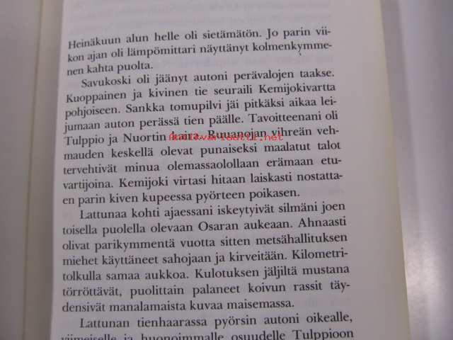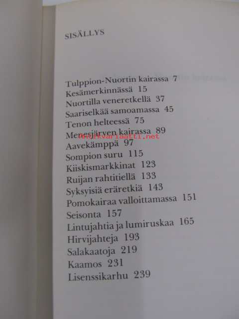 | Saatavilla | 1 kpl | | Julkaisuvuosi | 1975 | | Sivuja | 255 | | Painos | 1. | | Kunto | K3 | | Sidonta/painoasu | Sidottu (kansipaperit) | | ISBN | 951-23-0945-9 | | Kielet | Suomi |
