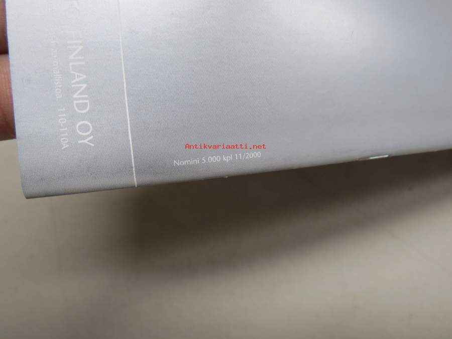 | Saatavilla | 1 kpl | | Julkaisuvuosi | 2000 - 11 | | Sivuja | 24 | | Kunto | K3 | | Sidonta/painoasu | Nidottu (pehmeäk.) | | Kielet | Suomi |