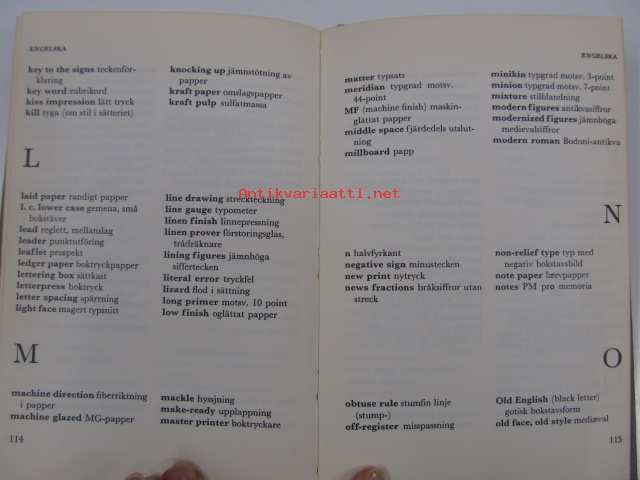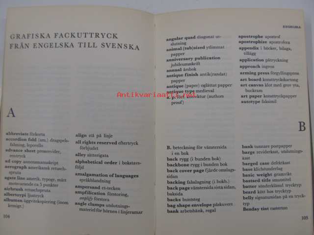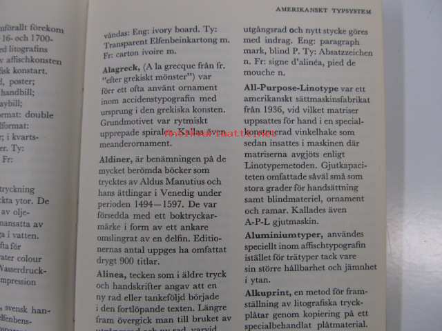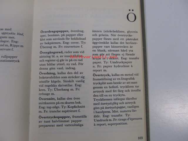 Grafisk ordlista. Svenska fackuttryck och deras översättning till engelska, tyska och franska