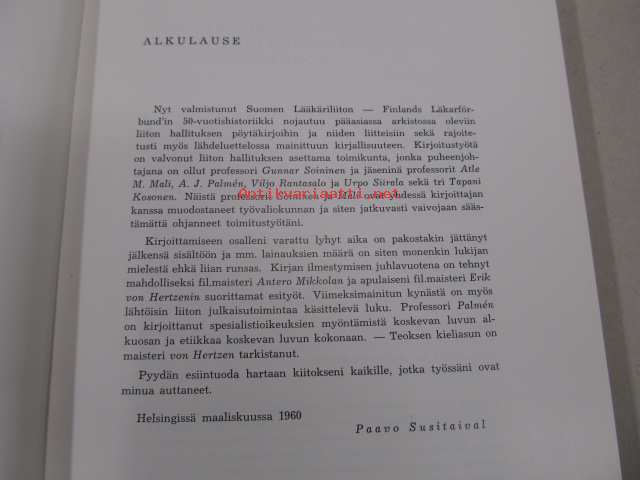 Susitaival Paavo, Suomen Lääkäriliitto, 1960