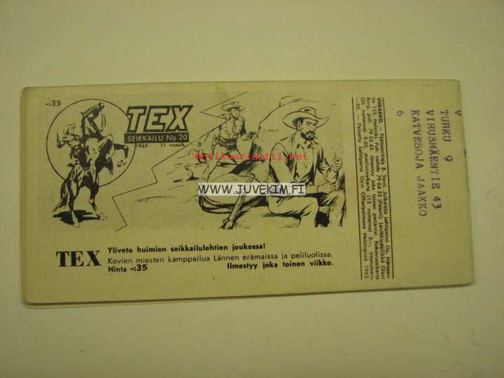 | Saatavilla | 1 kpl | | Julkaisuvuosi | 1963 | | Sivuja | 32 | | Kunto | K3 | | Sidonta/painoasu | Liuskalehti | | Kielet | Suomi |
