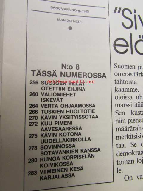 | Saatavilla | 1 kpl | | Julkaisuvuosi | 1983 | | Kunto | K4 | | Sidonta/painoasu | Lehti | | Kielet | Suomi |