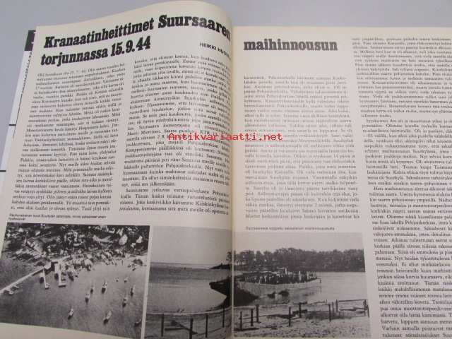 Kansa Taisteli 1975 nr 9, kranaatinheittimet Suursaaren maihinnousun torjunnassa 15.9.44, tapahtui Sillanpäässä JR 44, Onni Kuuluvainen: 13 minuuttia (laivue 16 kesällä 43) jatkosodan viimeinen partiomatka, kirj. Kosti-Heikki Lahti. Kuva Varpakylän kirkko.j