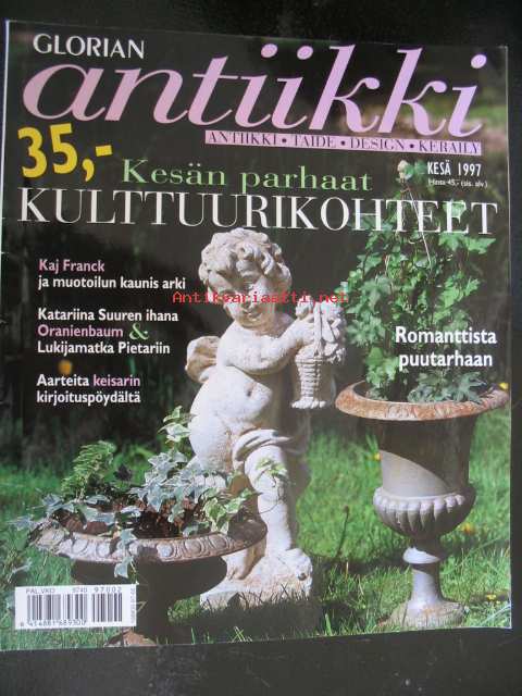 Glorian Antiikki nr 15 kesä 1997, Kaj Franck (6 sivua), Katariina Suuren Oranienbaum, apteekin aarteiden vartija - apteekkiesineet - Ahti Nokela, Elimon kartano
