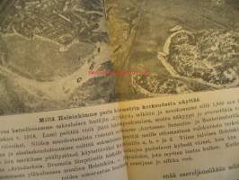 Sis sivut 361-380. Pieni kuva (n6x4cm) Tyrvään ent. Kallialan kirkko. Ilmakuva Helsingistä.Muurmannin rannikon edustalta kuva ja kartta. Muotia Pariisista. Helsingin Työväen talon torni sortuu.(kuva)