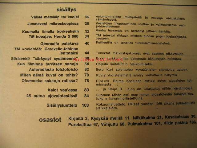 Tekniikan Maailma 1965 nr 20, koeajossa Honda S 600, koelento lentotaksi Sud Aviation GY 80 Horizon