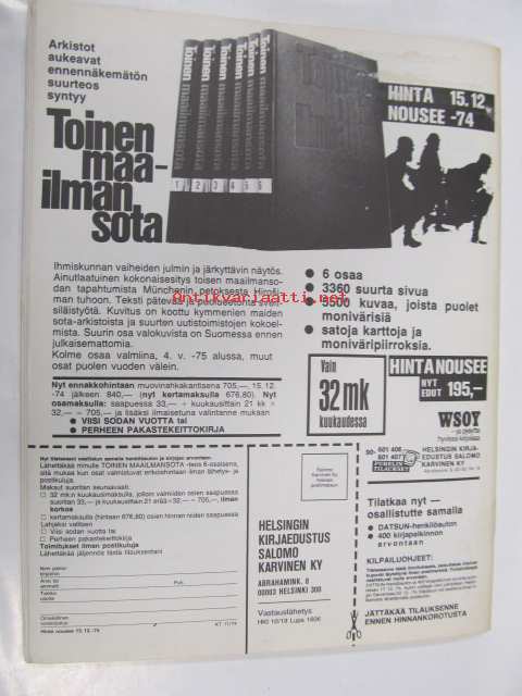 Kansa Taisteli 1974 nr 11, kansikuva Viipurin linna, Kutismajoen motti, Tornion motti