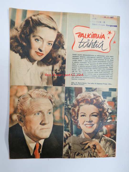 Elokuva-Aitta 1951 nr 9, Kansikuva Sakari Halonen, Hannes Häyrynen kotioloissa, Syntinen nainen, Tähtikuvasto Bette Davis - Spencer Tracy - Claire Trevor, ym.