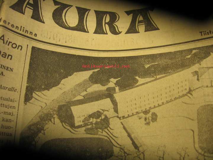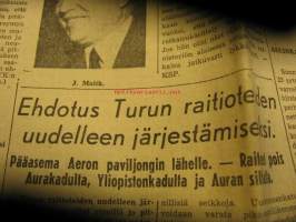 Pansion uusi kansakoulu pienoismallin kuva + teksti etusivulla. Artikkeli: Ehdotus Turun rautateiden uudelleen järjestämiseksi. Raiteet pois Aurakadulta...