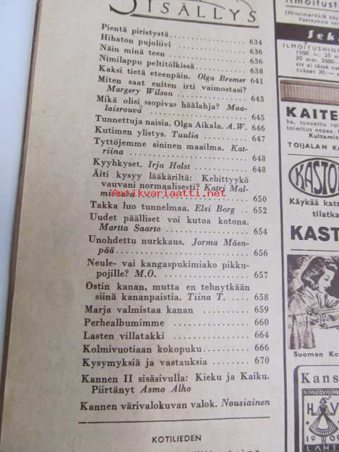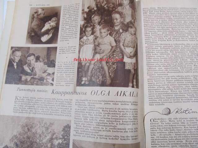Kotiliesi 1951 nr 20, lokakuu 1951, Tunnettuja naisia - Olga Aikala, 5 sukupolvea - Eva Vuolanne, Vilhelm Jaakkola, Maiju Aaltonen, Pirkko ja Jaakko Hirsimäki...