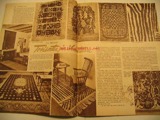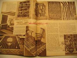 Kotiliesi 1953 nr 3, ryijy, monipuolinen vohvelipannu, Mary Summer, pidä pukusi puhtaana, kansakoulu kasvattaa terveitä lapsia, ryijy - tosisatu ja ihmetaru, Asko mainos - olohuoneen kaappi nro 4301, sohvapöytä nro 3307, lepotuoli nro 2411 ja astiakaappi nr 4001
