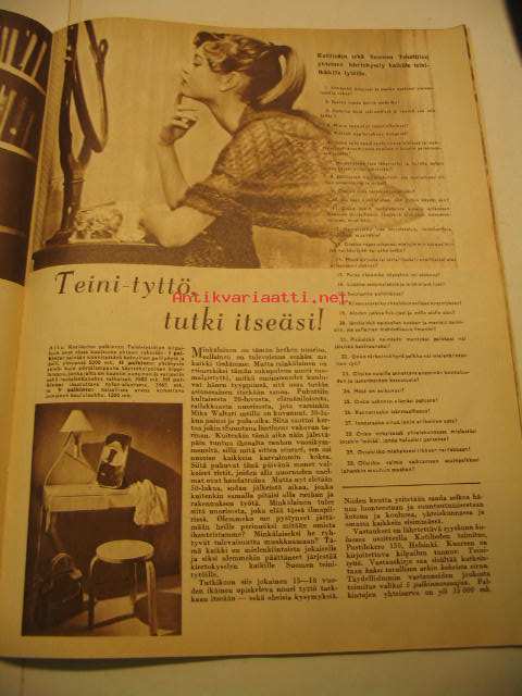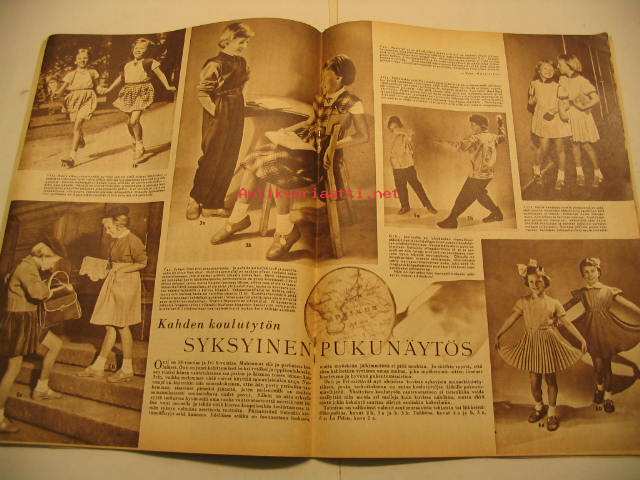 Kotiliesi 1953 nr 17, Mainio makaroni, Atlas jumpperityttö, Kotiapulainen, Teinityttö, Sienimetsään, Asko-mainos, ym.