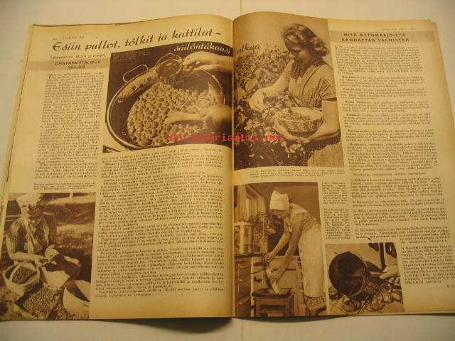 Kotiliesi 1954 nr 13-14, heinäkuu suomalainen kansannainen Edelfeltin kuvaamana, suomalaisia emäntiä: Siiri Nieminen (Janakkala), säilöntäkausi alkaa,